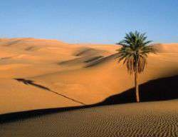 Չորս կողմն անապատ է, որտեղ մերթ դեղին ավազներ են, մերթ` գորշ, հողմահարված քարեր: Միգապատ երկնքից տապ է թափվում, ոչ ջուր կա, ոչ կանաչ թուփ: Այստեղ տարածվում է աշխարհի ամենախոշոր անապատը՝ Սահարան (7 մլն կմ2), որտեղ ջերմաստիճանը հասնում է + 58օC-ի (ստվերում), իսկ ավազի մակերեսին՝ + 80օC-ի: Օդը Սահարայում չոր է ու փոշոտ: Ուժեղ քամու՝ սամումի (արաբերեն՝ տոթակեզ քամի) ժամանակ փոշին ու ավազը թափանցում են ամենուրեք, երկինքը մթնում է ավազափոշուց, օդում 2–3 ժամ շարունակ յուրահատուկ մետաղային ձայներ են լսվում. դա օդում սլացող ավազահատիկների «երաժշտությունն է»: Սահարայի ընդարձակ, անջուր, միապաղաղ գորշ ավազների գրկում հանդիպում են փոքրիկ կանաչ կղզյակներ՝ օազիսներ: