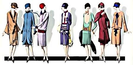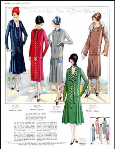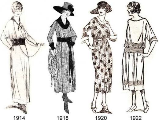 Զգեստների ամենատարածված բացվածքն ուներ V-ձև տեսք: Իսկ եթե մինչև 1915 թվականը զգեստներն ունեին բարձր գոտկատեղ և ամբողջությամբ ծածկում էին ոտքերը, ապա դրանից հետո նրանք պետք է իջնեին ծնկի վրա կամ էլ բարձր լինեին ծնկից: