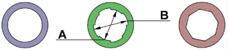 Որոշ երկրներում տրամաչափը համարվում է փողանցքի փոքր տրամագիծը(նկարում A), իսկ մյուս երկրներում համարվում է փողանցքի մեծ տրամագիծը(նկարում B), և ստացվում է, որ նույն գրառման դեպքում պատահում է փամփուշտի տրամաչափը և փողի տրամաչափը տարբեր են լինում: Հրազենի տրամաչափը ըստ չափի դասակարգվում է՝