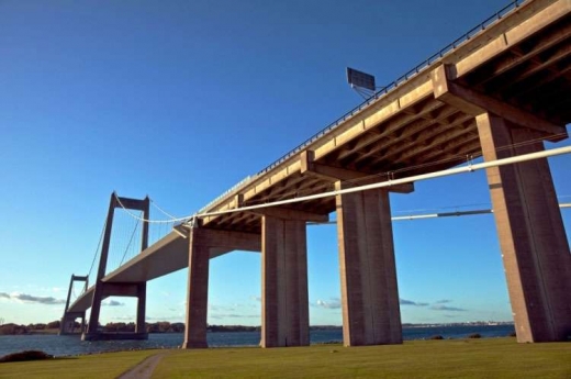 Կղզին միացած է երկու կամուրջներով Փոքր գոտի նեղուցով [Յուտլանդիա թերակղզի]ի հետ: Առաջին կամուրջը կառուցվել է 1930-ական թվականներին ավտոմեքենաների և երկաթուղու համար, իսկ երկրորդը կառուցվել է 1970-ականներին, և նախատեսված է միայն ավտոմեքենաների համար: Մեծ գոտի նեղուցով Ֆյունը միացած է Զելանդիա կղզու հետ: Իրականում դա երկու հաջորդական կամուրջներ են, որոնց միջև գտնվում է նեղուցի մեջտեղում գտնվող Սպրյոգե կղզին: