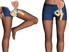 - հոդափոսի համեմատությամբ ազդրի մոտակա ծայրի արտաքին և վերին տեղաշարժումը,