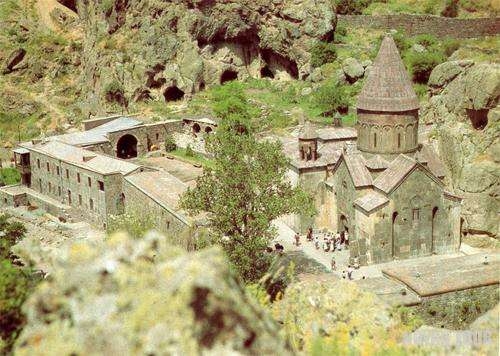 Գեղարդի վանքը միջնադարյան Հայաստանի հանրահռչակ վանքերից մեկն է, մեր յուրօրինակ հնություններից մեկը։ Ըստ ավանդության՝ հիմնադրվել է քրիստոնեությունր Հայաստանում պետական կրոն հռչակվելու առաջին տարիներին (4-րդ դարի սկիզբ)։ Վանքի հիմնադրումը վերագրել են Գրիգոր Լուսավորչին։ Գլխավոր՝ Կաթողիկե եկեղեցին, ըստ արևմտյան ճակատի մուտքի վիմագիր արձանագրության, կառուցվել է 1215 թ՝ Զաքարյանների օրոք։ 13-րդ դարում Պռոշ իշխանը այն գնում է Զաքարյաններից և կառուցում վիմափոր շենքերը (ճարտարապետ Գալձագի գլխավորությամբ):