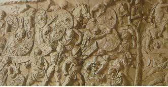 Ճարտարապետական շինությունները հռոմեացիները զար դա րում էին շքեղ զարդանախշերով, քանդակներով ու որմնանկարներով: Պահպանվել են դրանց բազում նմուշներ, որոնք աչքի են ընկնում կատարման բարձր վարպետությամբ: Դրանցում արտացոլված են հռոմեացիների կյանքի տարբեր կողմերը: Այս առումով հատկանշելի է Տրայանոսի հաղթասյու նը, որի վրա պատկերված են պատմության կարևորագույն իրադարձությունները:
