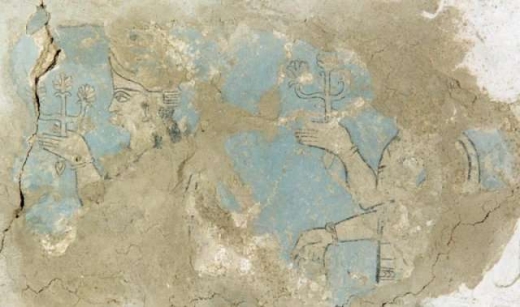 Հրապարակից հյուսիս գտնվում էին պալատական շինությունները: Կենտրոնական հատվածը կազմված էր 17x14մ մակերես զբաղեցնող սյունազարդ բակից`   երկայնական կողում բաղկացած 5-ական, իսկ լայնական կողում`   4-ական սյուներով: Պալատի դահլիճն ուներ 17x7,5մ չափեր: Դահլիճի տանիքը հարթ էր և ուներ փայտե ծածկ, իսկ պատերը զարդարված էին բազմագույն որմնանկարներով, ինչպես նաև գորգերով, որոնք կախելու համար պատերի մեջ խփել են խոշոր, կլորավուն գլխիկներ ունեցող գամեր: Որոշ անցքեր այժմ էլ պարզ երևում են: