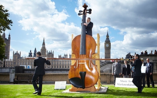 Գործիքը 7 անգամ մեծ է օրիգինալից և այն նվագելու համար սովորական փայտիկը հարմար չէ: Հատուկ այդ ջութակի համար պատրաստված փայտիկը 5,18 մետր երկարություն ունի: