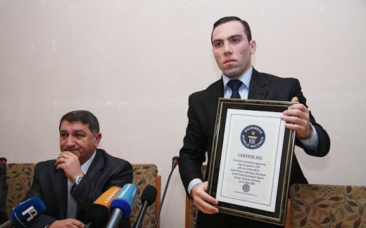 Երևանի պետական լեզվաբանական համալսարանի ֆիզդաստիարակության ամբիոնի դասախոս Դավիթ Ֆահրադյանի՝ «Գինեսի գրքի» տնօրինությունից ստացած հավաստագիրը հաստատում է 2010 թվականի նոյեմբերի 13-ին նրա սահմանած նոր ռեկորդը: