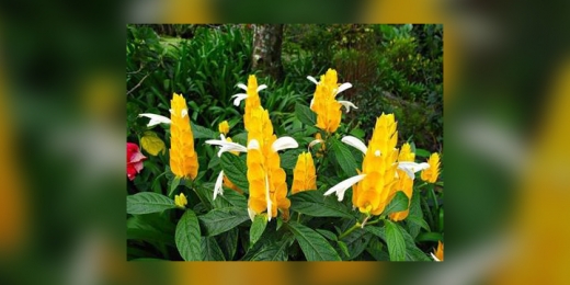 Պախիստախիսը դեղին  է`   Pachystachys lutea, այն աճում է մինչև    50 սմ:  Բավականին բարակ ցողունի վրա  տեղավորված են օվալաձև խոշոր, սրացած ծայրերով, մի քիչ կնճռոտ մուգ կանաչ տերևները: Հասկատիպ  դեղին կամ կարմիր ծաղիկներին ծածկող տերևների  երկարությունը հասնում է մինչև 10սմ : Իրենք`   ծաղիկները,  սպիտակ են մոտ 5սմ երկարությամբ  և շատ գեղեցիկ ձև ունեն: Պախիստախիսը ծաղկում է գարնան վերջից մինչև աշուն, դա նշանակում է, որ դեղին ծածկող տերևները երկար դիմանում են, չնայած ծաղիկները արագ թառամում են: