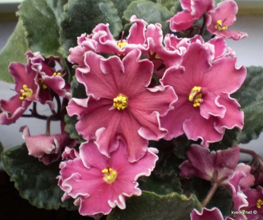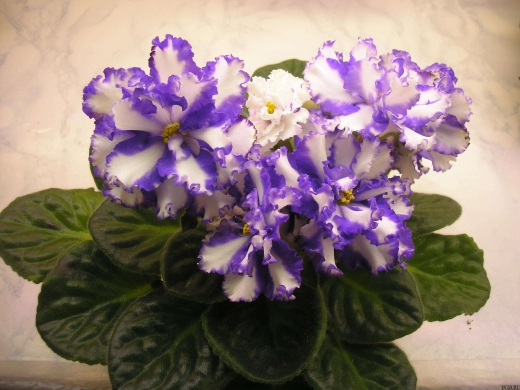 Բույսի ծաղիկները բազմերանգ են`   մուգ կապույտ կամ թանձր մանուշակագույն, բալագույն, սպիտակ, վարդագույն: Ճիշտ խնամքի դեպքում և բավարար լուսավորության դեպքում`   բույսը ծաղկում է կլոր տարին, բայց ծաղկառատ շրջան է համարվում գարնանային և աշնանային սեզոնները: Ծաղկակիր ցողունները դուրս են գալիս տերևների փնջաձև կենտրոնից և ձգվում են դեպի լույսը: Ծաղկակիր ցողունի երկարությւոնը կարող է ձգվել մինչև 10 սմ, ամեն ցողունի վրա կարող է նստել 3-8 կոկոն: Դրանք ապրում են մեկից-երկու շաբաթ, որից հետ մեռնում են և  առաջ են գալիս երիտասարդ ծաղկակիրները: