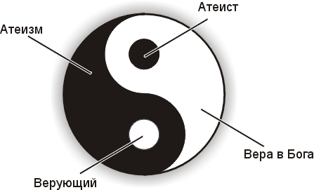Աթեիզմը հակադրվում է թեիզմին, որն իրենից ներկայացնում է առնվազն մեկ Աստծո գոյության առկայության հավատը: Աթեիզմի տակ հաճախ հասկացվում է նաև ցանկացած գերբնական ուժի ժխտումը, կլինեն Աստվածներ, հոգիներ, այլ ոչ նյութական ուժեր, հետմահու կյանք և այլն:  Աթեիզմն աշխարհայացք է, որը ժխտում է կրոնի`   որպես գերբնական ուժի նկատմամբ հավատը: